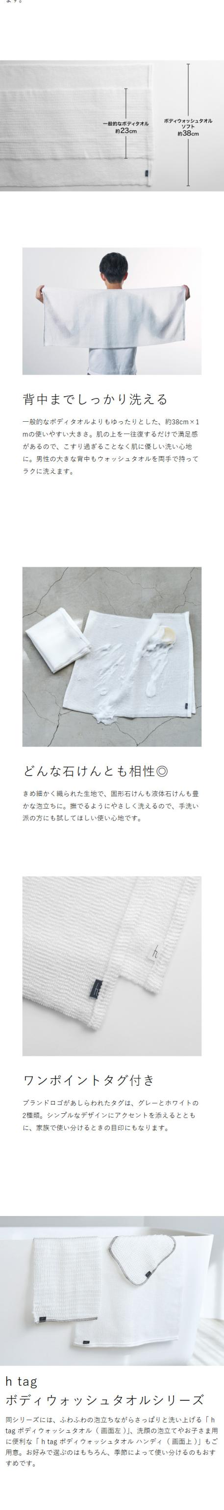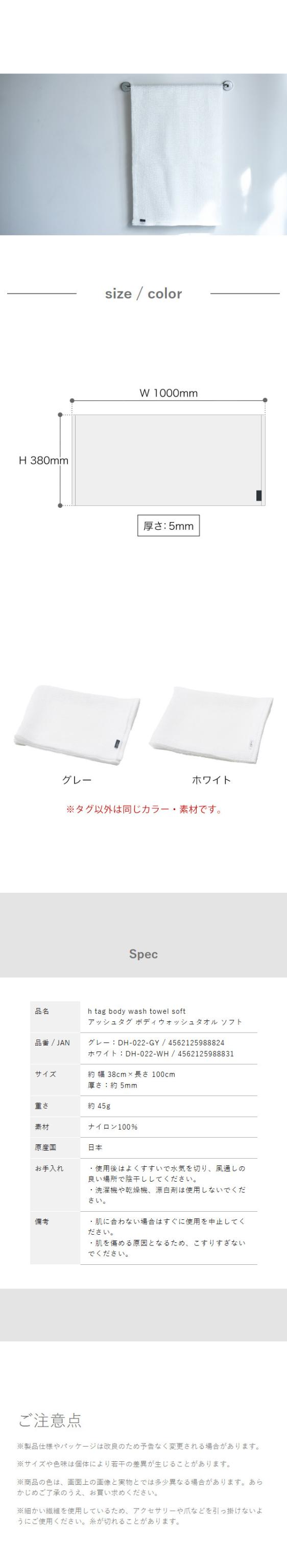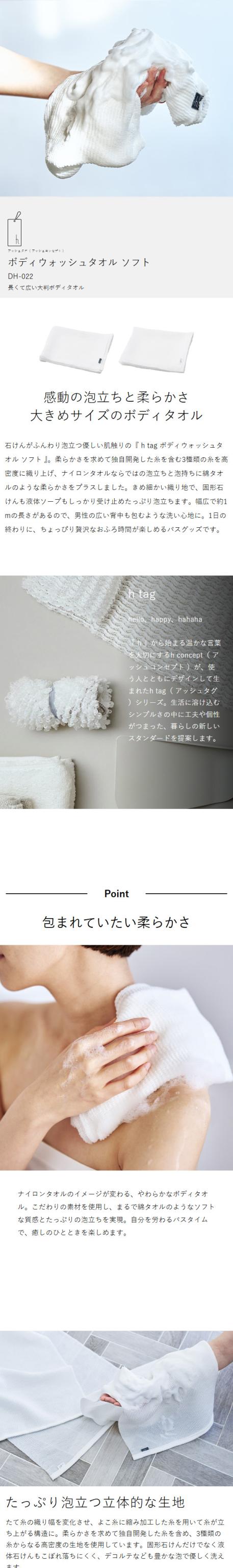 [ h tag ボディウォッシュタオルソフト ]ボディウォッシュタオルソフト ボディタオル 浴用タオル ナイロン 大判 やわらかめ 無地 肌に優しい 銭湯 お風呂 モコモコ泡 たっぷり泡 バス用品 ボディケア 日本製 h concept アッシュタグ DH-022