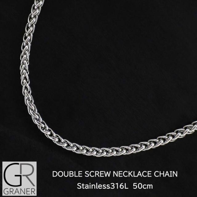 メンズネックレスチェーン メンズネックレス ステンレス ネックレス チェーン メンズ スクリュー ダブル 50cm シンプル シルバー 銀 金属アレルギー 対応 graner GR-005