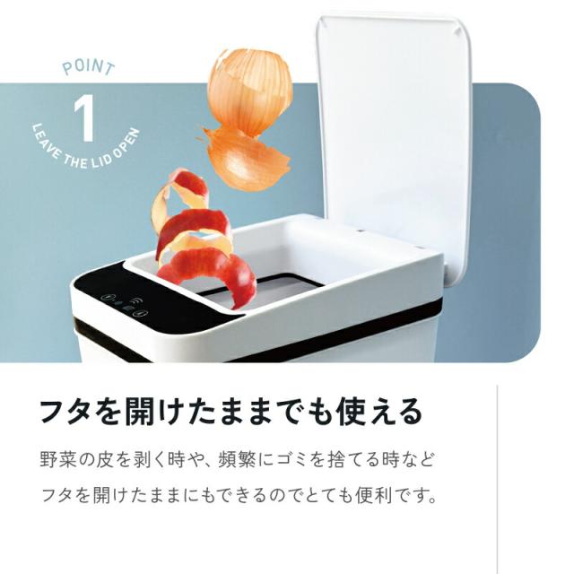●フタを開きっぱなしにもできるので、野菜の皮むき時など頻繁にゴミを捨てる時にもとても便利!