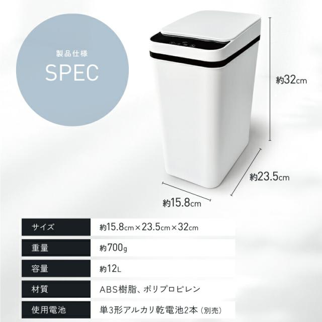 ●横幅はわずか約15.8cm!コンパクトで場所を選ばない!なのにゴミの入る量は約12L!