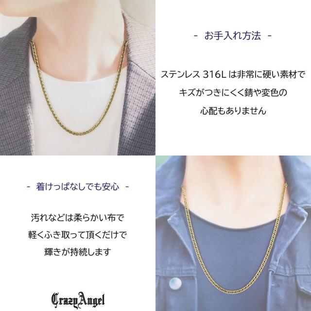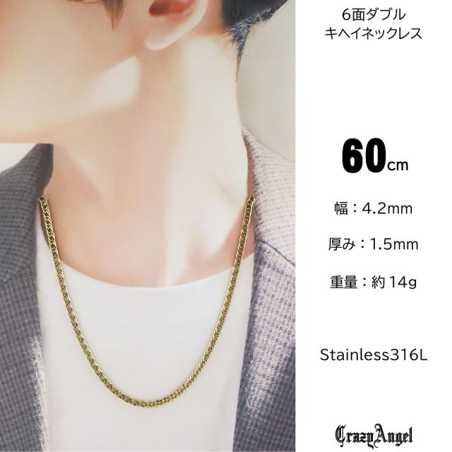 キヘイネックレス キヘイチェーン 喜平ネックレス 喜平チェーン メンズ ステンレス スティール 6面ダブル 6面カット 60cm ゴールド 金属アレルギー 対応