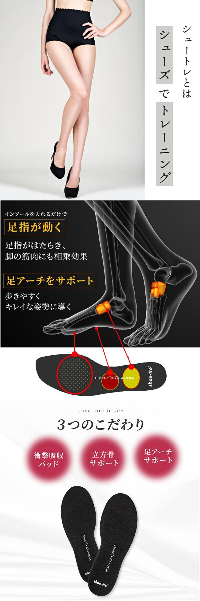 シュートレ インソール アーチサポート 美脚 足トレ 歩きながらトレーニング 引き締まる中敷き スポーツ ヒール 運動靴 レディース カットできる サイズ自由 BMZ bmz クラウディア CLAUDIA