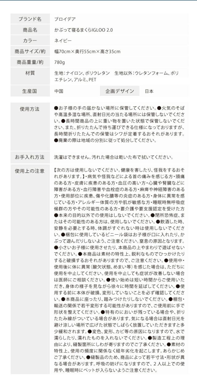 | 商品名 | かぶって寝るまくら IGLOO 2.0 |