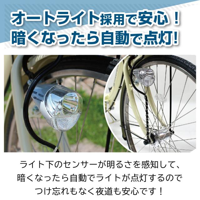 ライト下のセンサーが明るさを感知して、暗くなったら自動でライトが点灯するのでつけ忘れもなく夜道も安心です!