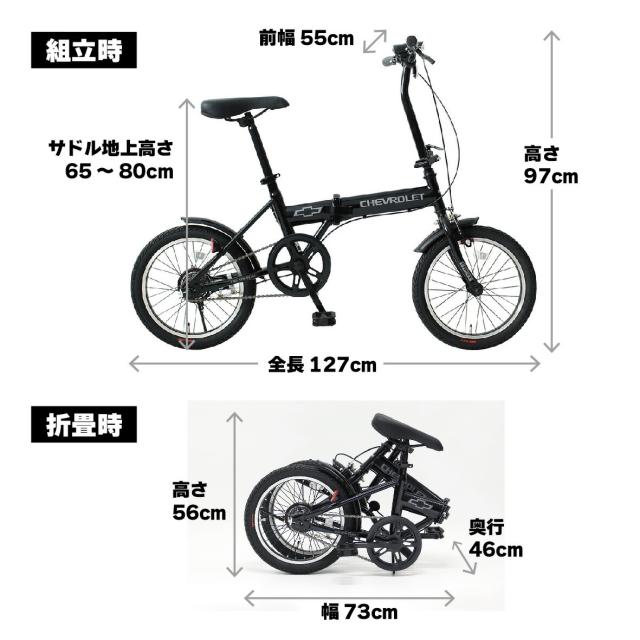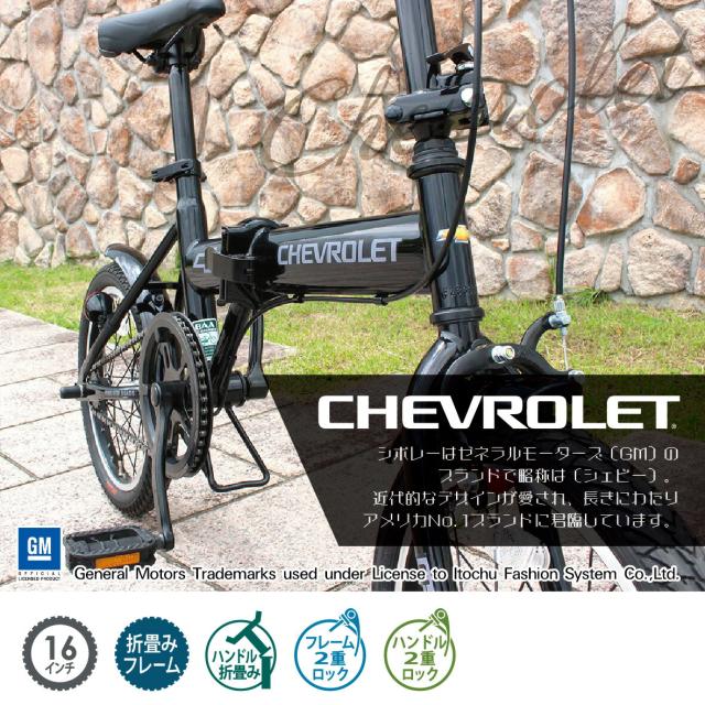 ミムゴ 自転車 折り畳み 折りたたみ CHEVROLET シボレー 16インチ MG-CV16BAA-BK BAA仕様 LEDライト 軽量 コンパクト 通勤 通学 お出かけ ちょい乗り メーカー直送