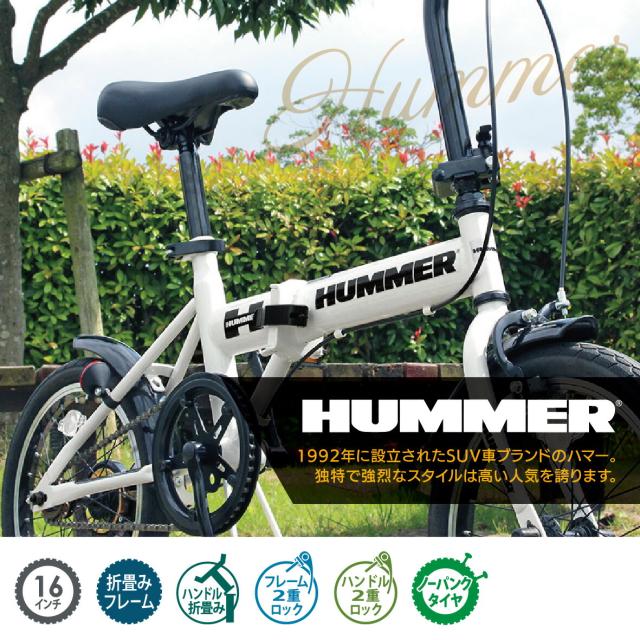 ミムゴ 自転車 折り畳み 折りたたみ HUMMER ハマー ノーパンク 16インチ MG-HM16N-WH パンクしない コンパクト 通勤 通学 空気入れ不要 ちょい乗り メーカー直送
