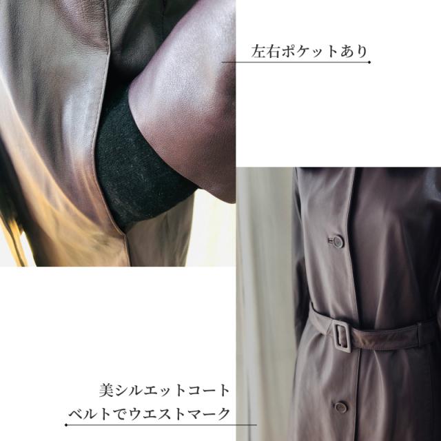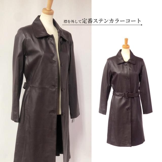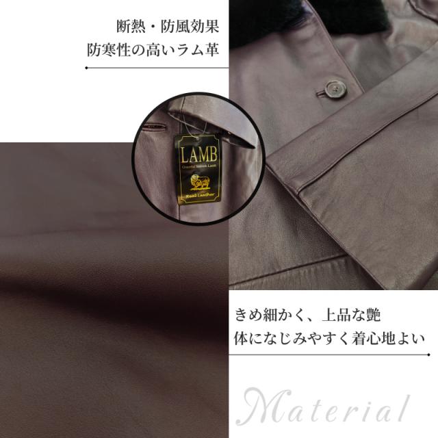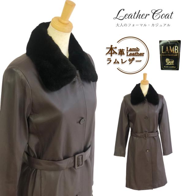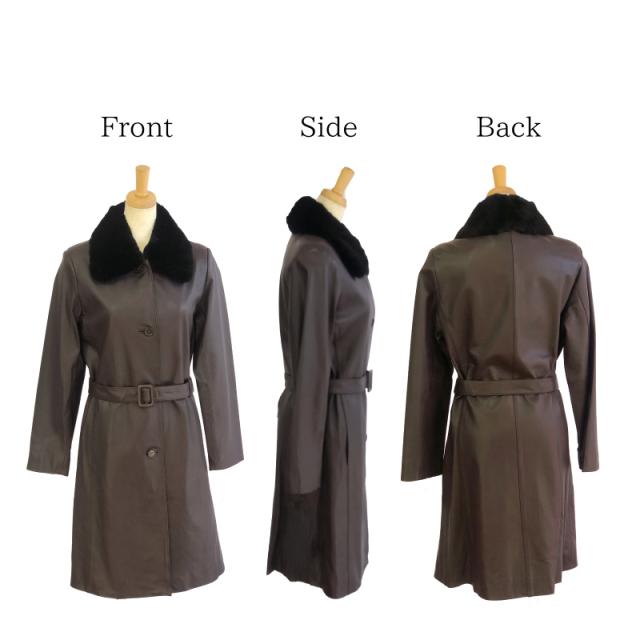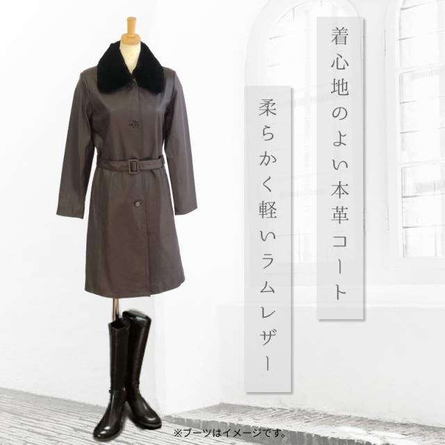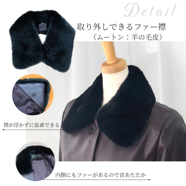 本革 レザーコート レディース ラム革 羊革 ムートン ファー付 秋 冬 ステンカラーコート フォーマル カジュアル アウター 革コート 女性 大人 上品 M 3L 9号 15号 レザー コート レザージャケット 革 ギフト プレゼント 防寒 防風 断熱効果 付け襟 ベルト付き