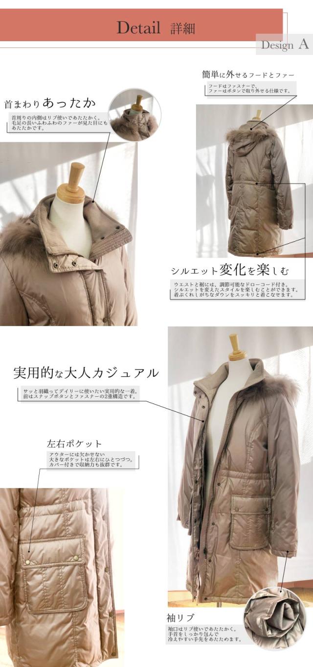 ダウン80%フェザー20%使用の、防寒性、保温性に優れたダウンコートです。