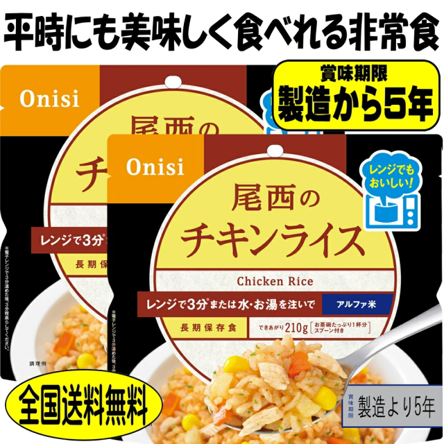 非常食 5年保存 非常食 尾西 チキンライス 80g 2食 レンジ+(プラス)国産 防災 備蓄 食料 災害 アウトドア ごはん 美味しい 防災食品 防災グッズ ギフト 備蓄米 長期保存米 常温保存 尾西食品 防災食 保存食 アルファ米 防災セット 尾西のアルファ米 地震