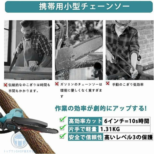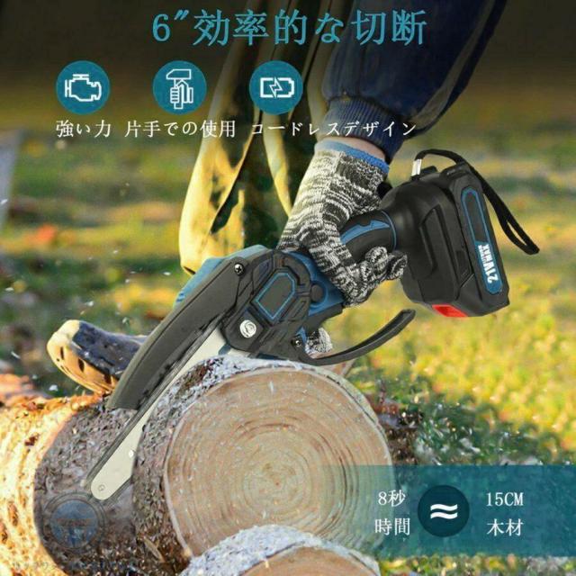 【2年保証★】チェーンソー 充電式 小型 チェンソー 6インチ 電動チェーンソー マキタ18Vバッテリー互換対応 家庭用強力 軽量 木工切断 枝切り 伐採 ポータブル レシプロソー 日本語の説明書