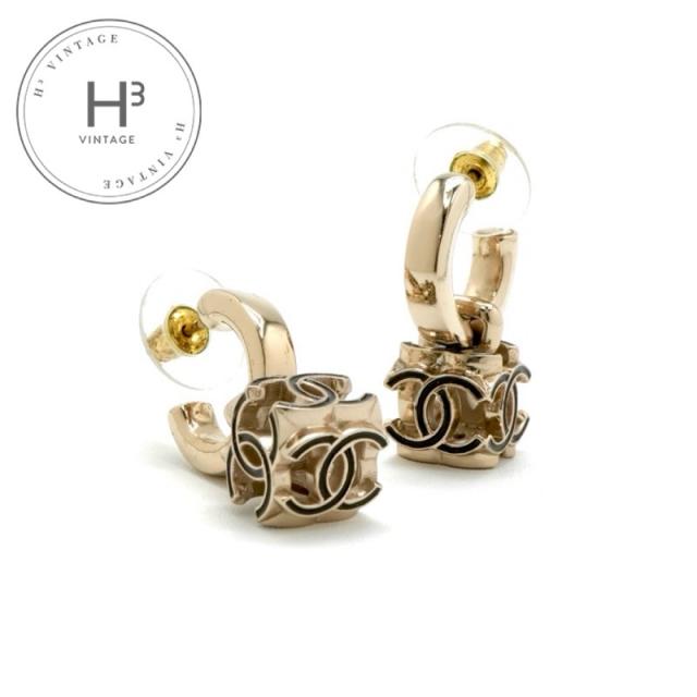 シャネル CHANEL ピアス イヤリング ゴールド ブラック ココマーク キューブ フープ