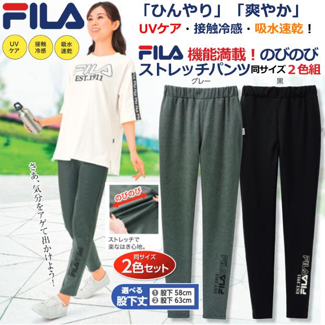 女性用 フィラ(FILAレディース機能満載!のびのびストレッチパンツ同サイズ2色組)UVケア 接触冷感 吸水速乾 選べる股下 春夏秋 3シーズン