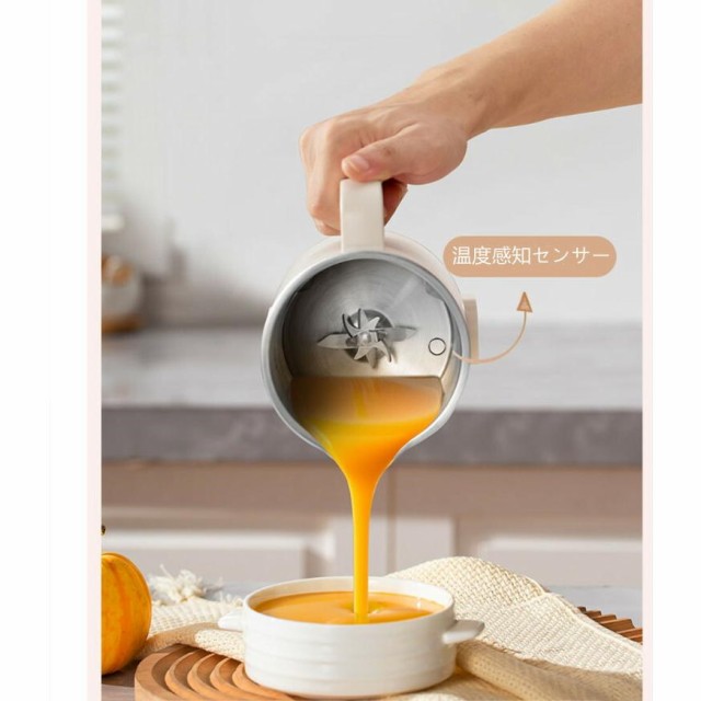 大豆を水で浸けず、ワンタッチだけで操作でき、あったか豆乳、コーンジュース、セロリジュースなど。フード