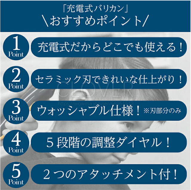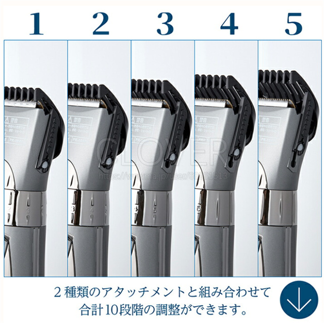 ●付属品:ACアダプター・清掃ブラシ・クシ・2アタッチメント(刈高調整機能4mm〜30mm・10段階)