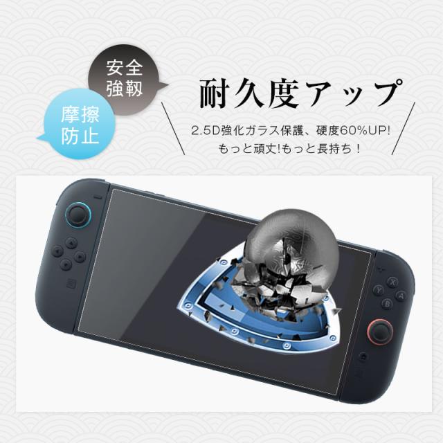 Nintendo Switch2 強化ガラスフィルム ニンテンドー スイッチ ガラスカバー 画面保護強化ガラスシール Switchフィルム スクリーン保護シート ラウンドエッジ加工 クリア仕様 0.3mm 超薄型 表面硬度10H 耐衝撃 疎油 撥水 気泡レス ★らくらく補助ツール付きで簡単貼り付け!