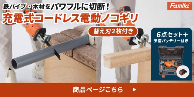 | 素材 | 本体:ABS樹脂、ナイロン樹脂、ノコ刃(木材ジュータン用)マンガン鋼、ノコ刃(金属・プラスチック用)ハイカーボン鋼 |