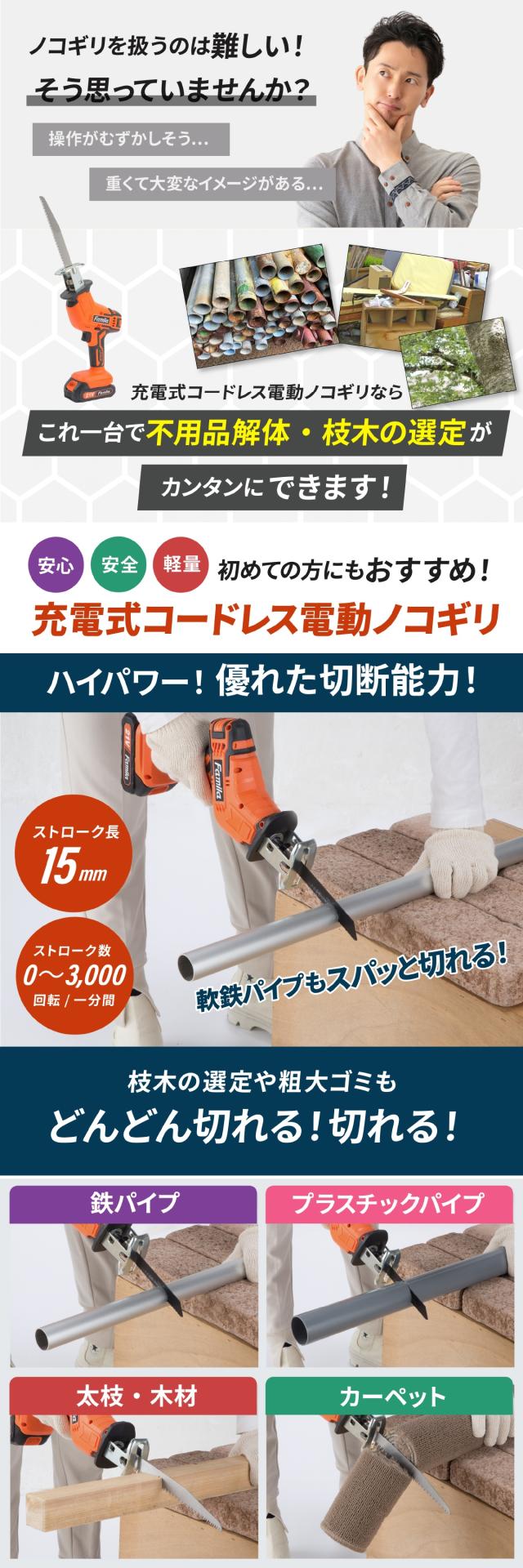 | 商品名 | 充電式コードレスのこぎり6点セット(替え刃2枚付き) |