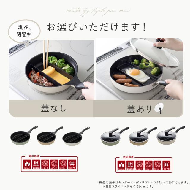 仕切りフライパン センターエッグトリプルパンmini 同時調理 時短 IH対応 ガス火 対応 深型 深い ミニ 仕切り 3つ 焼き 茹でる フライパン 玉子焼き おしゃれ シンプル オリーブ カフェラテ ミルク