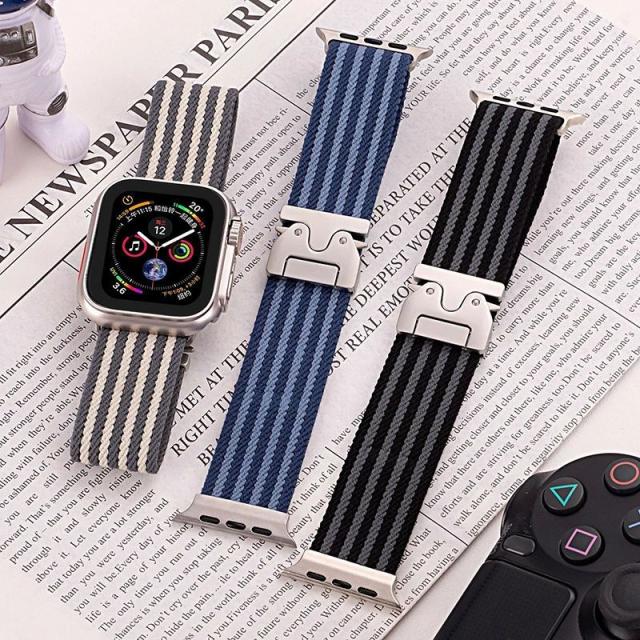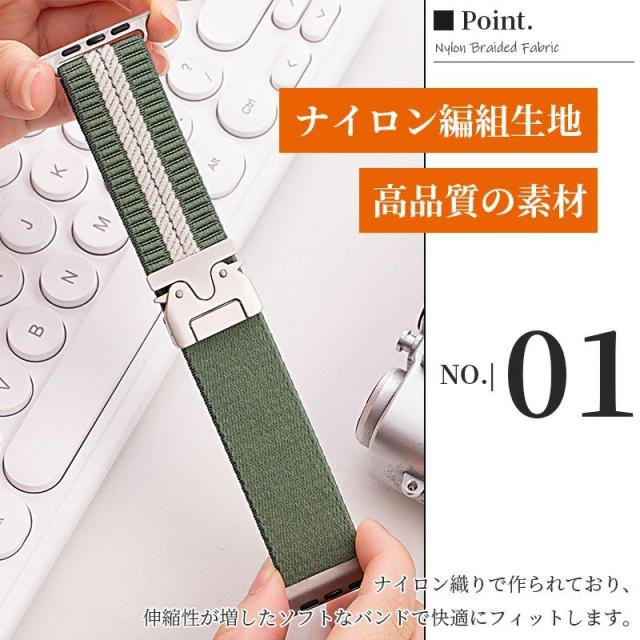 ウーブンナイロンストラップは、プレミアムナイロンとパラシュートバックルを組み合わせたもので。トレンドブロガーが常に愛しているナイロン織りからインスピレーションを得て、ファッション向けにデザインしました。軽量ナイロン織物素材で作られており、どんな環境にも耐えられます。
