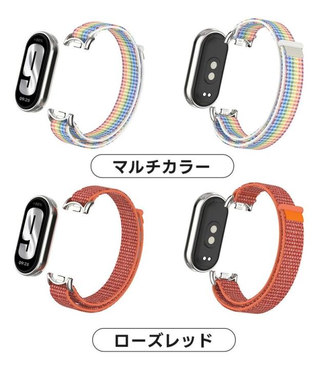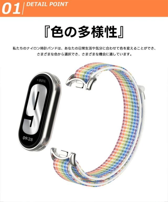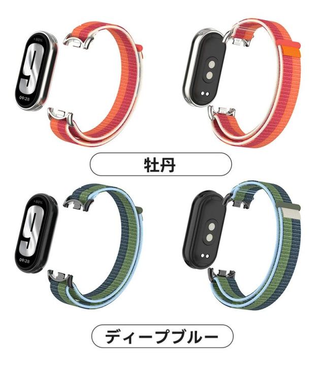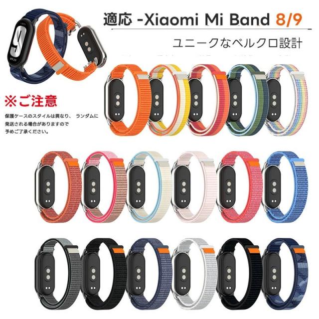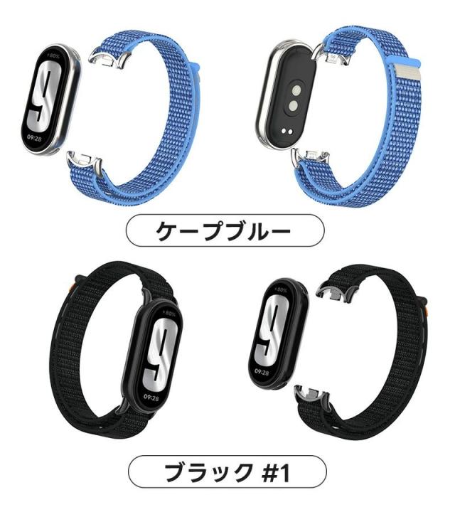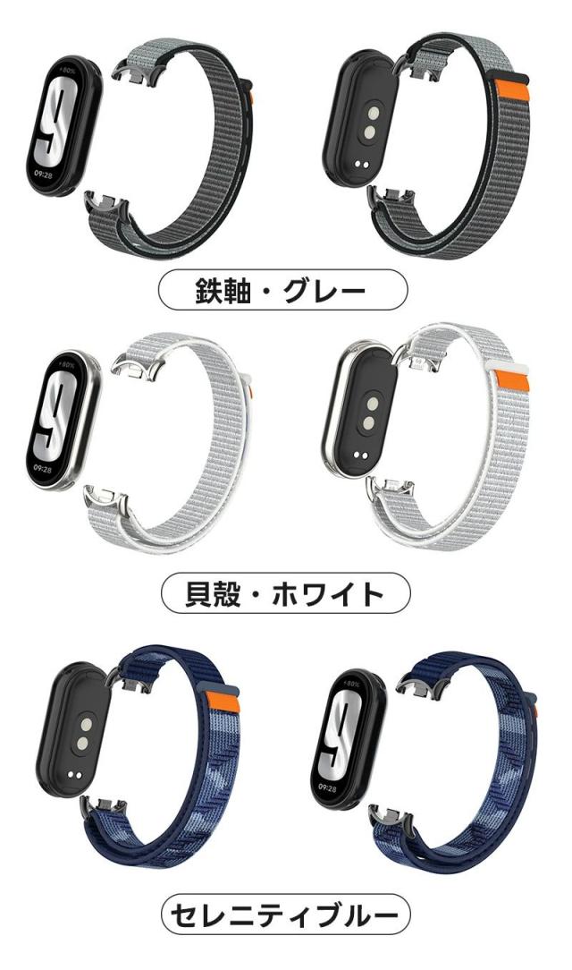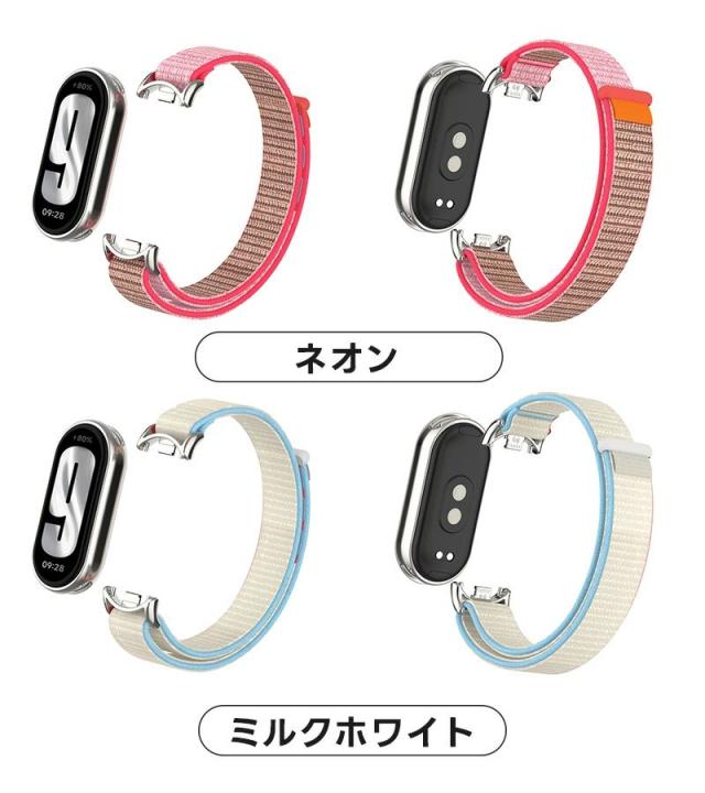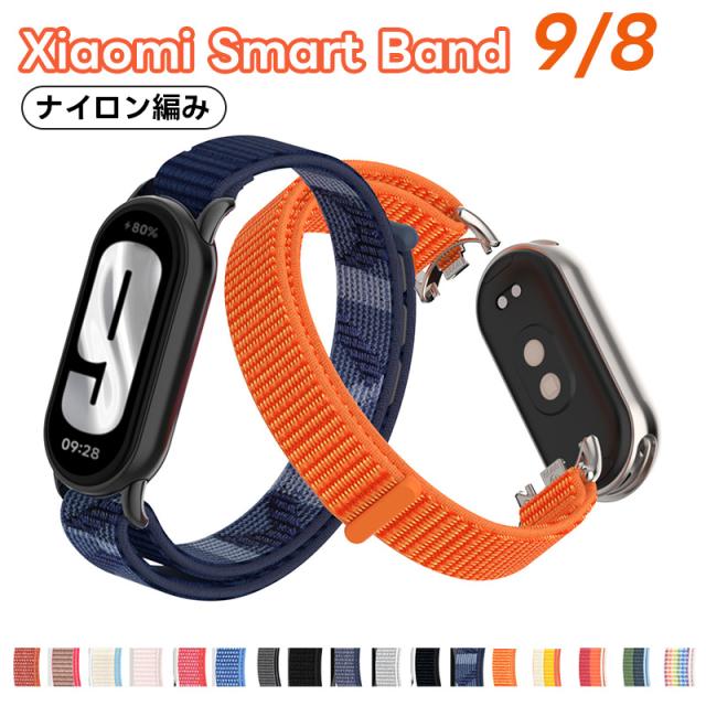 シャミイ xiaomi Xiaomi Mi Band 9 / Mi Band 8 / Mi Band 8 対応 バンド 交換バンド シャオミ mi band 8/9 適応 替えベルト ナイロン ストラップ 長さ調節可 通気設計 両色 ナイロン編み 通気 スポーツ