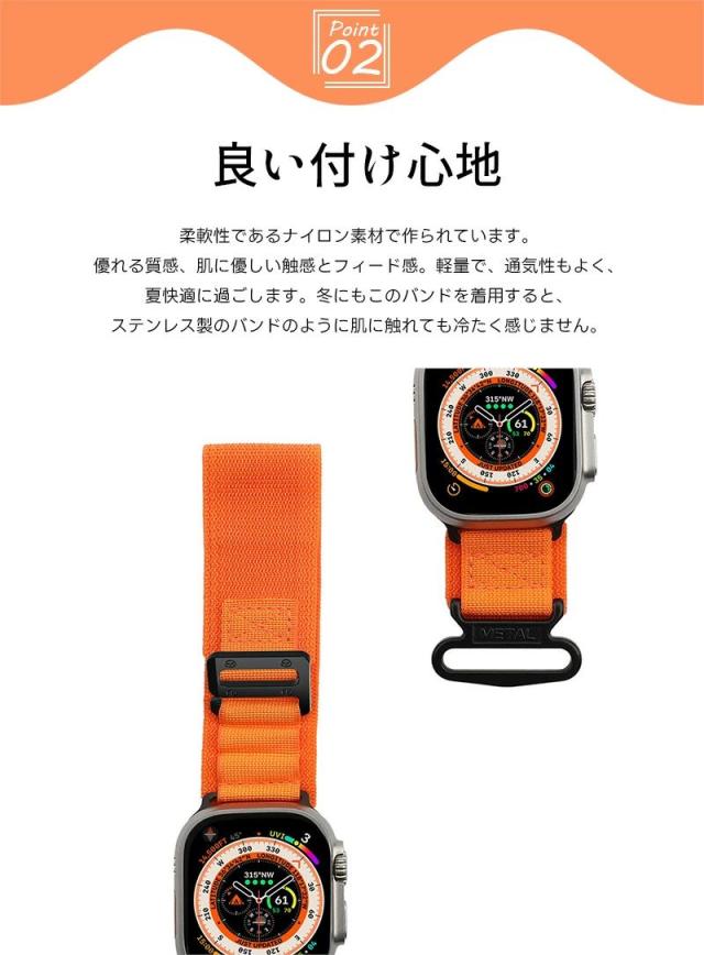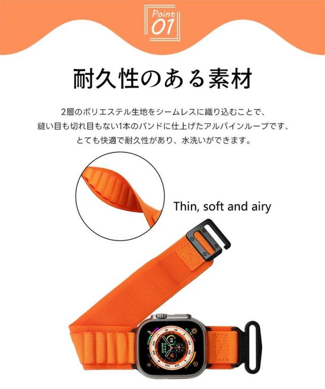 このApple Watch バンドは2層のナイロン生地をシームレスに織り込むことで、腕に触れる内側はフラットで、外側には「かまぼこ」状のループが並んでいます、縫い目も切れ目もない1本のバンドに仕上げたアルパインループです。
