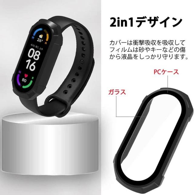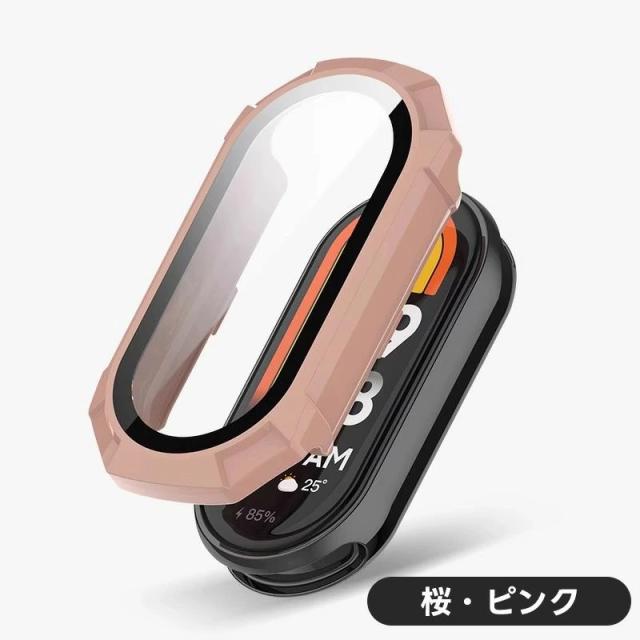 シャミイ バンド 9 xiaomi mi band 8 Xiaomi Smart Band 8 ケース xiaomi mi band 9 Xiaomi Smart band 8 カバー ガラスフィルム+PCフレーム 一体型 タッチ感度いい 全面保護 脱着簡単 薄型 軽量 耐衝撃性 落下防止 シャオミ Smart Band 8 保護ケースカバー