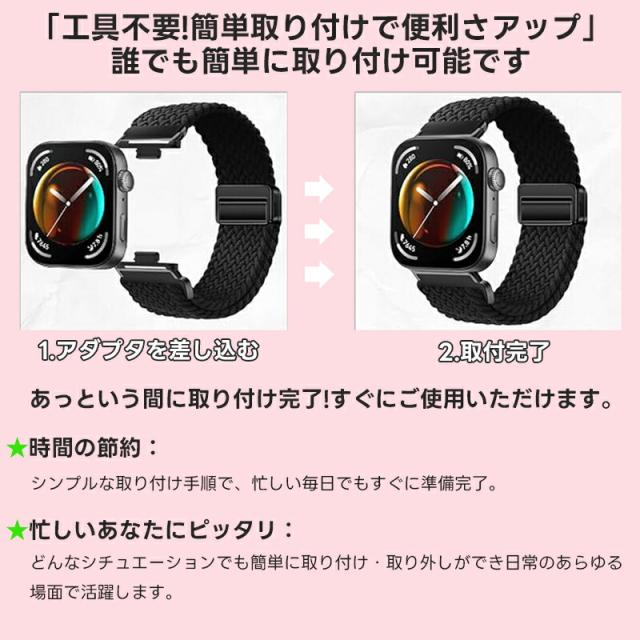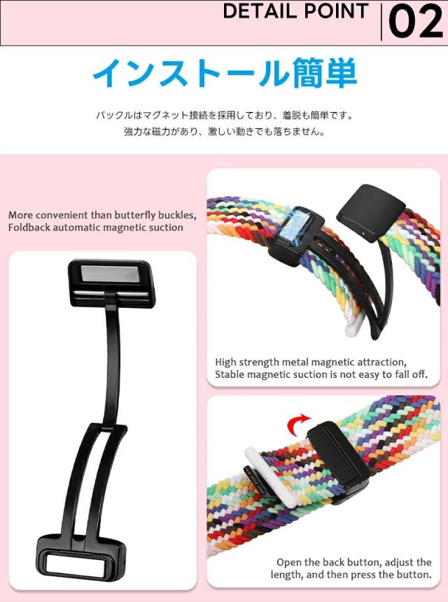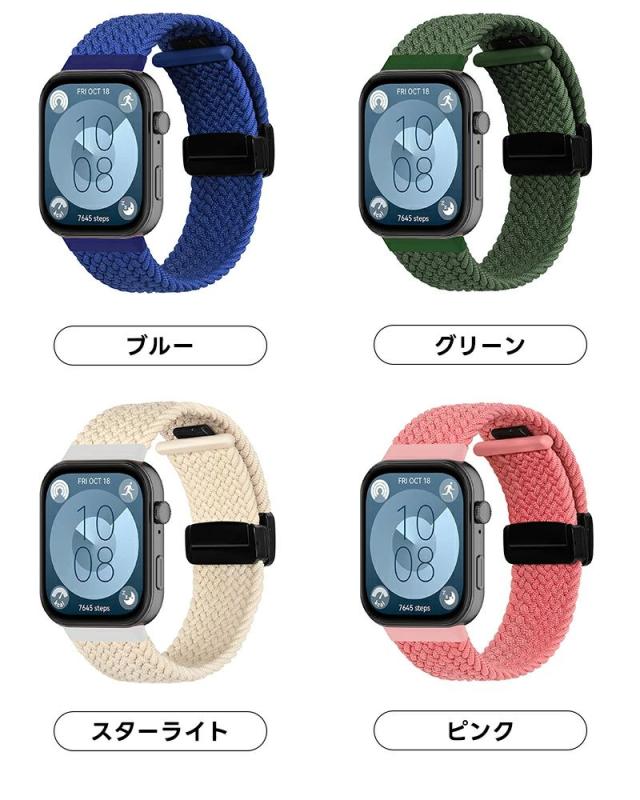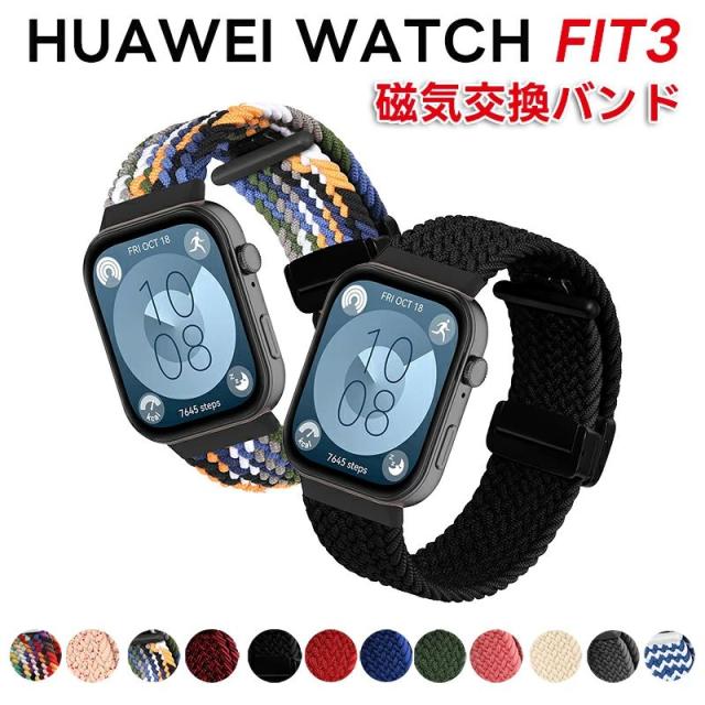 交換用バンド コンパチブル Huawei Watch Fit 3 ファーウェイ Watch Fit 3 バンド マグネット ナイロン 編み込み 強力な磁石 耐久性 快適性 通気性 伸縮性 柔軟性 防汗 軽量 サイズ調節可能 日常 スポーツ 仕事 旅行に最適 対応 ハーウェイ Wacth Fit 3 ベルト