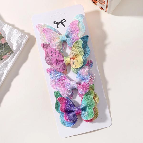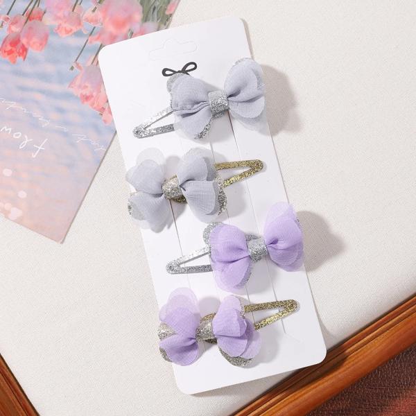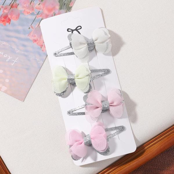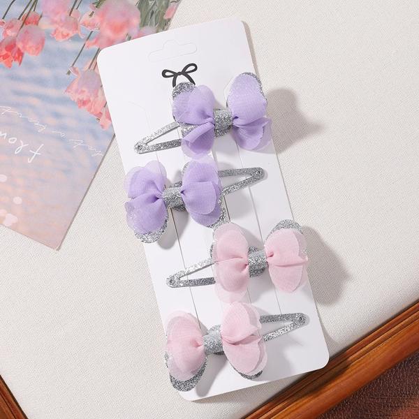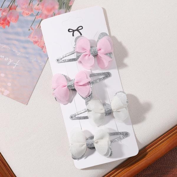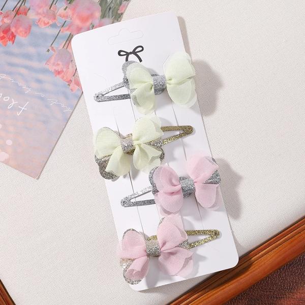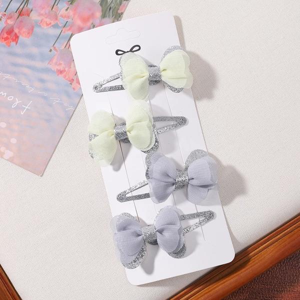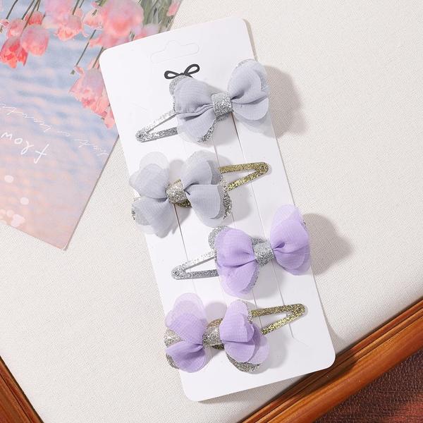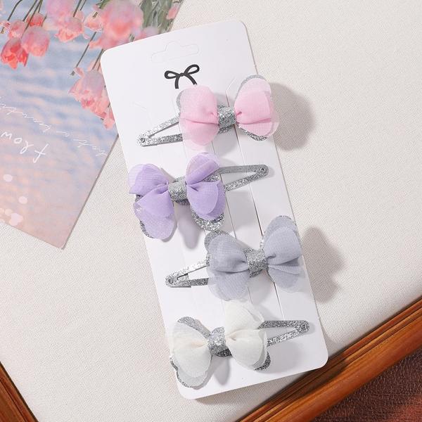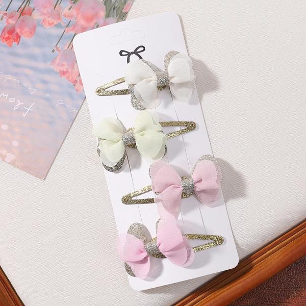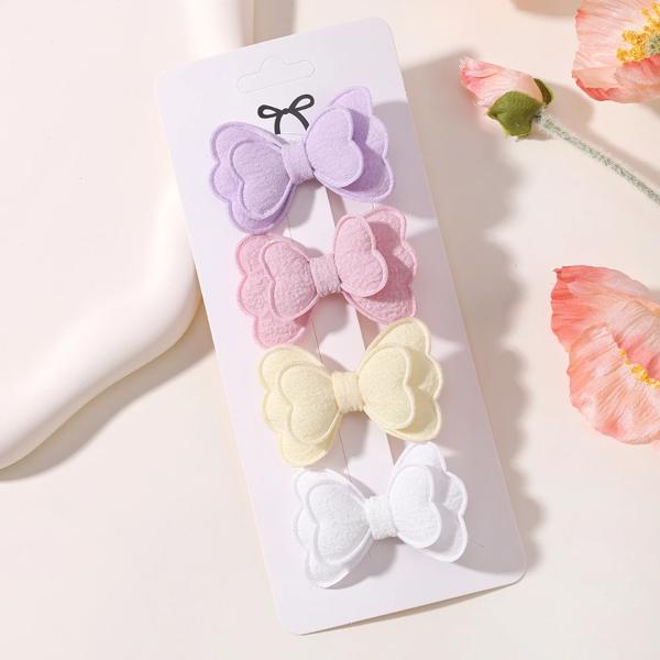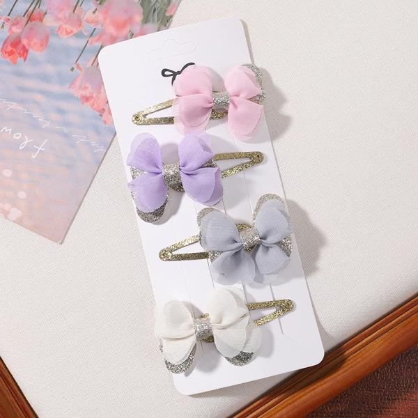 女の子のための蝶ネクタイ付きの刺繍されたヘアクリップ,4個,女の子のためのヘアクリップのセット,愛らしい無地,ヘアアクセサリー,ギフト