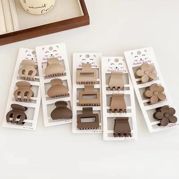 女性のための小さな茶色のヘアピンのセット,3ピース,つや消しフック,韓国のサメクリップ,シュレッダー,ヘアアクセサリー