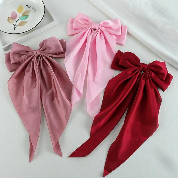 女性用の大きなエレガントなリボン,サテン,蝶ネクタイ,ヘアピン,ヘアアクセサリー,シンプル,3個