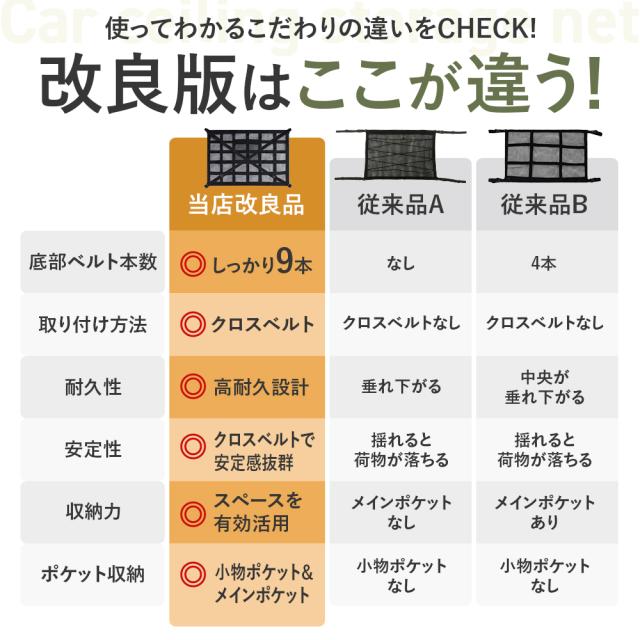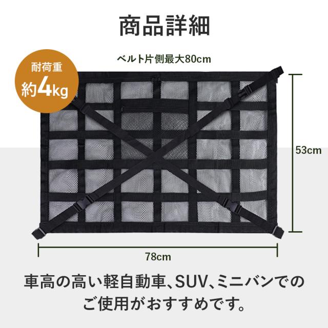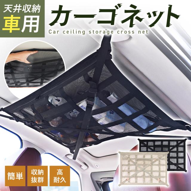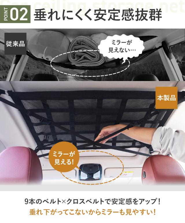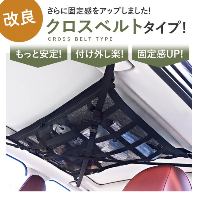 車 天井ネット 天井収納 ネット カーゴネット 車用 クロスベルト 天井収納ネット 収納 天井 ネット 2層 車天井収納 ルーフネット ラゲッジネット 車中泊グッズ 荷物 車内 落下防止 たるまない クロスバンド 旅行グッズ