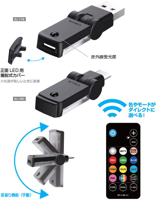 ●星光産業 EL-180 リモコン付スイング USBライト USB-Cポート用 EL180