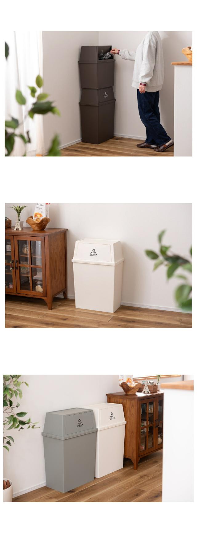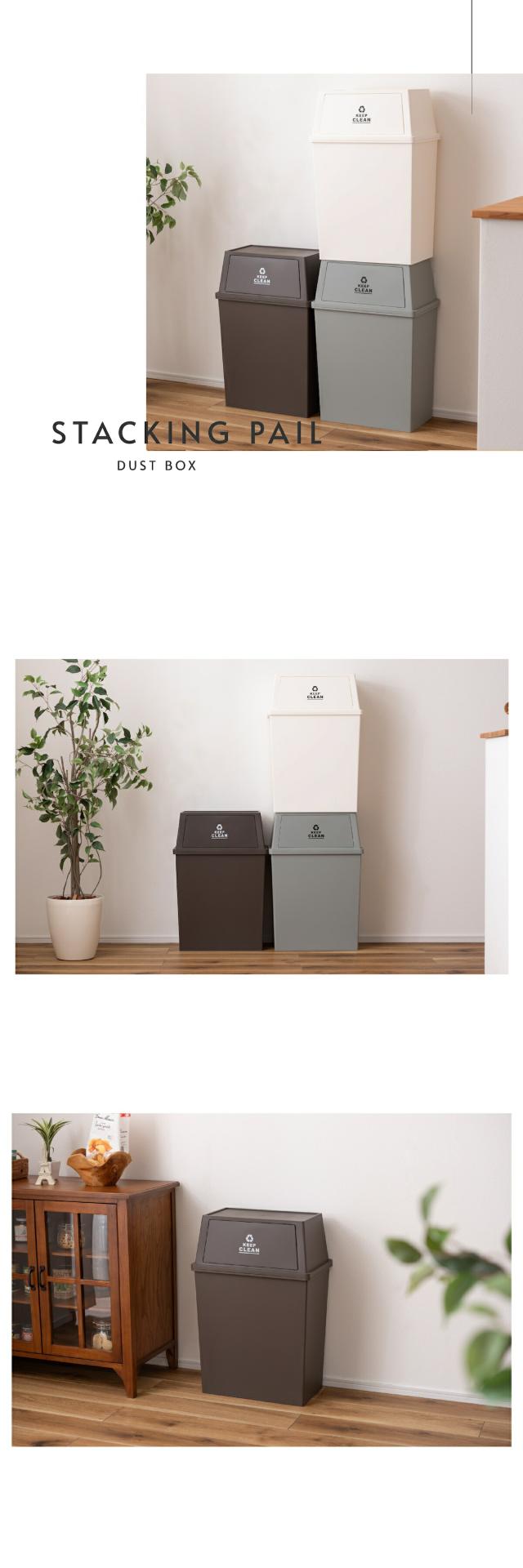 ごみ箱の上部と下部の凹凸を合わせて積み重ねるだけで簡単にスタッキングできる便利なゴミ箱。