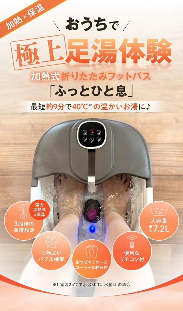 加熱式 折りたたみフットバス ふっとひと息 フットバス 足浴器 足湯 折りたたみ コンパクト 自宅 加熱式 保温 温度調節 バブル 足裏 マッサージ フットローラー リモコン付き