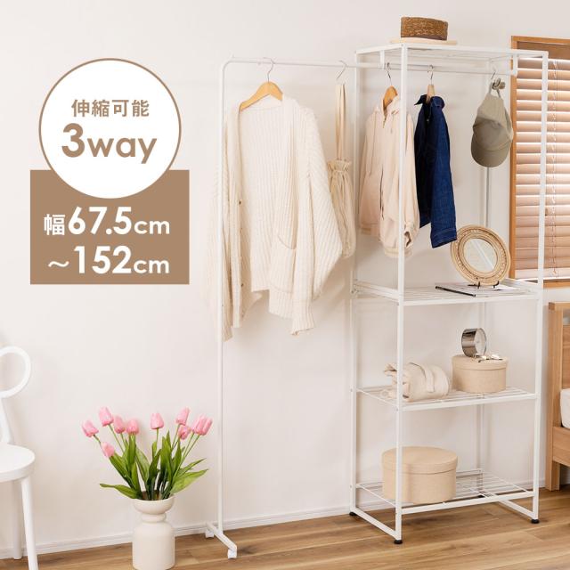 ●伸縮可能なハンガー機能付きのスチールラック