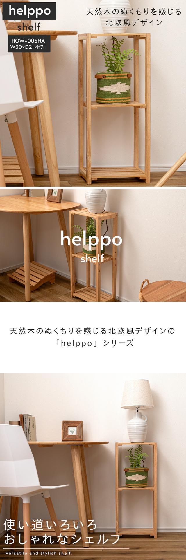 天然木のぬくもりを感じる北欧風デザインの「helppo」シリーズより、あると嬉しいスリムなシェルフが登場しました。シリーズで揃えて置けば、お部屋に統一感が生まれます。