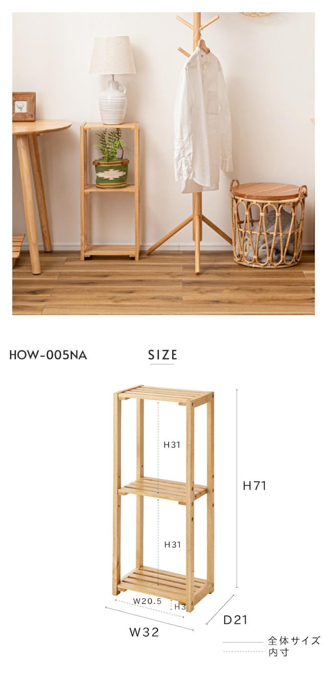 シェルフ スリム 棚 収納 棚板可動 高さ調節 天然木 シンプル おしゃれ 北欧 韓国インテリア ナチュラル リビング 寝室 脱衣所 洗面所 隙間スペース コンパクト 軽量 東谷 あずまや HOW-005NA 送料無料