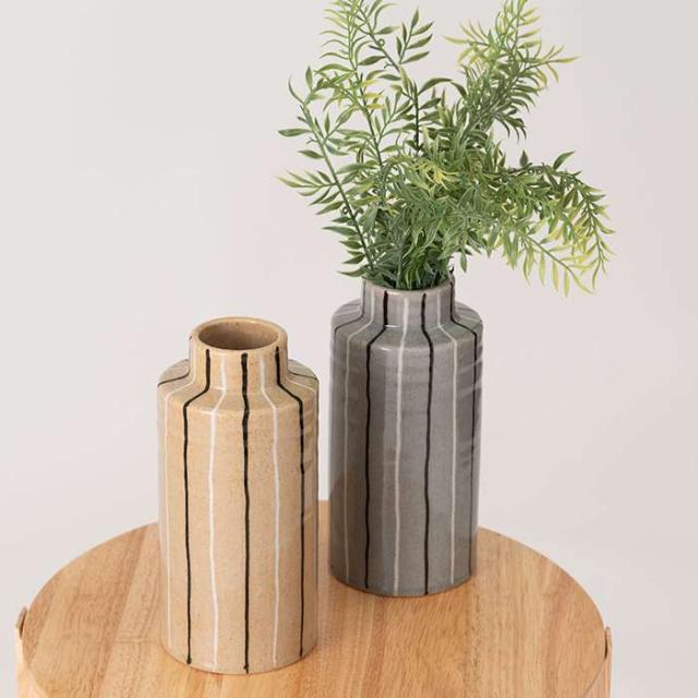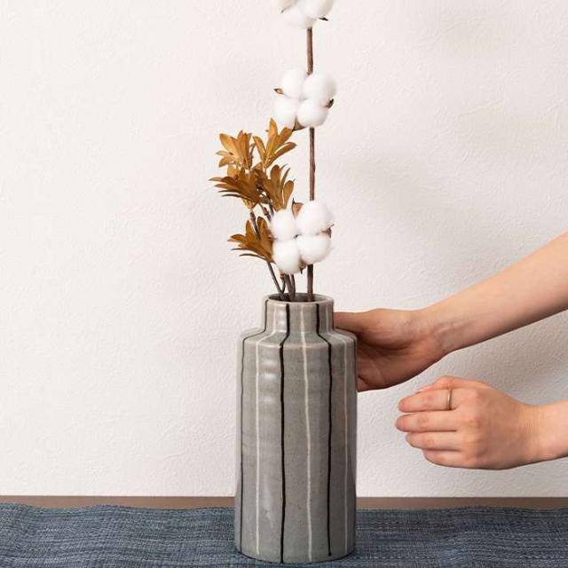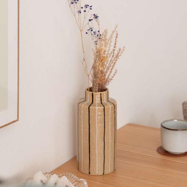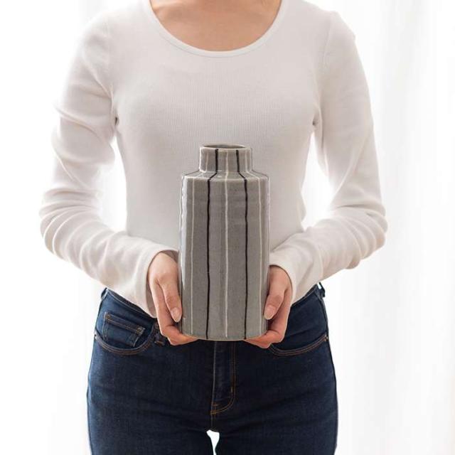 フラワーベース 花瓶 花びん かびん フラワースタンド 陶器 北欧 おしゃれ ドライフラワー シンプル 艶 生花 枝物 卓上 床置き 陶器製 和モダン モダン レトロ ベーシック インテリア 新生活 新学期 引越 転居 引っ越し準備 一人暮らし ファミリー 部屋 おしゃれ インテリア 寝室 リビング 玄関 廊下 室内 かわいい 大きい 大きめ 高さ22cm ストライプ ボーダー スリム