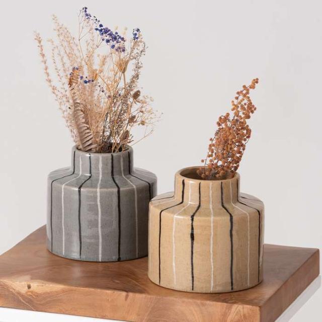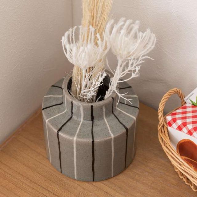 フラワーベース 花瓶 花びん かびん フラワースタンド 陶器 北欧 おしゃれ ドライフラワー シンプル 艶 生花 枝物 卓上 床置き 陶器製 和モダン モダン レトロ ベーシック インテリア 新生活 新学期 引越 転居 引っ越し準備 一人暮らし ファミリー 部屋 おしゃれ インテリア 寝室 リビング 玄関 廊下 室内 かわいい 大きい 大きめ 高さ14cm ストライプ ボーダー
