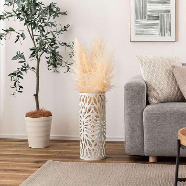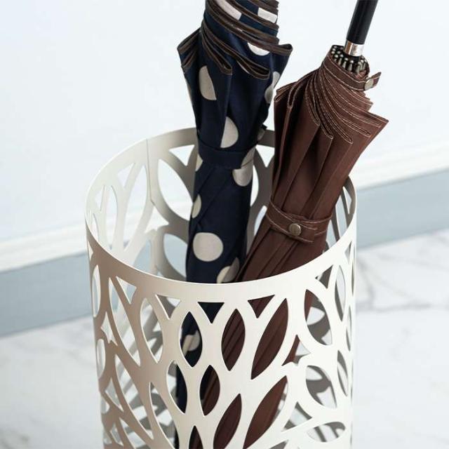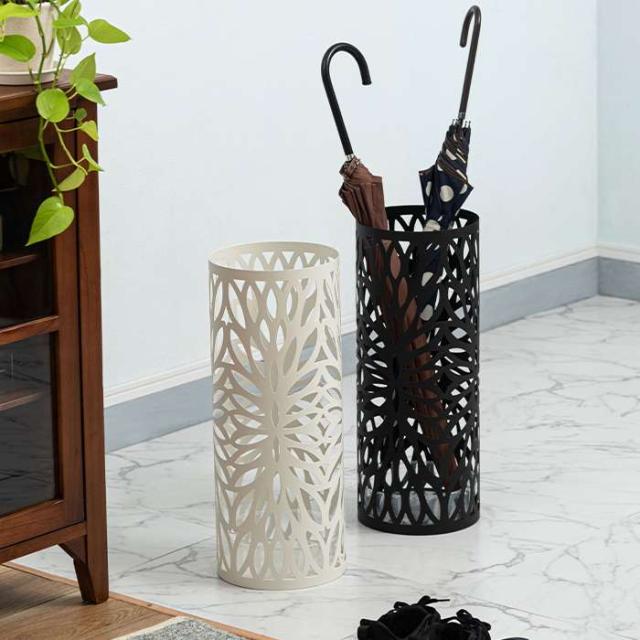 傘立て。カラーは、ブラック(4985155243068:LFS-184BK)、ホワイト(4985155243075:LFS-184WH)、です。シンプルデザインですっきりと置ける、スチール製傘立て。スリムで場所を取らず、狭いスペースにも置けるサイズ感が嬉しい傘立て。全体にデザインを施した円柱タイプです。粉体塗装のスチール製で錆びにくく、丈夫な作りに仕上げました。