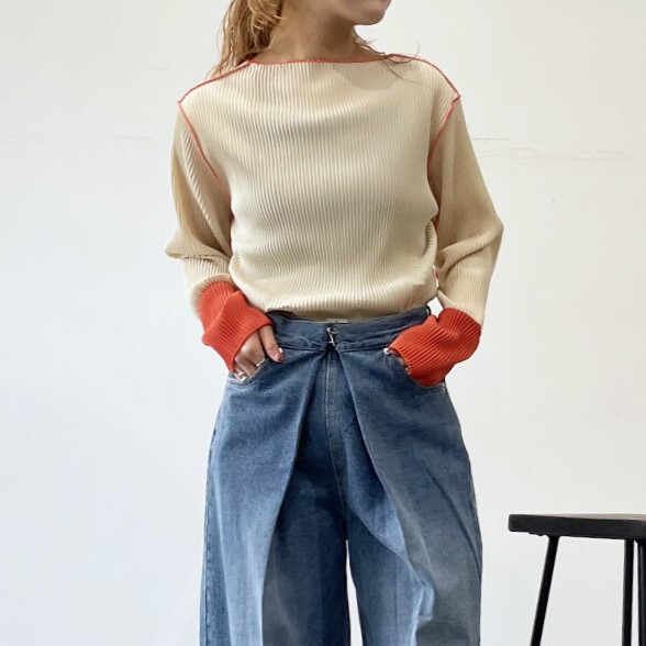 シンプルながらかわいいデザインの「配色プリーツトップス」です。