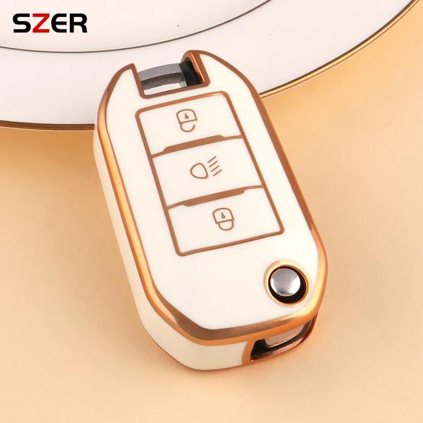 Tppu-車のフリップキーケース,Peugeot 208, 308, 408, 508, 2008, 3008, 4008, 5008,c3,c4,サボテン,c6,c8用シェル,アクセサリー,新品