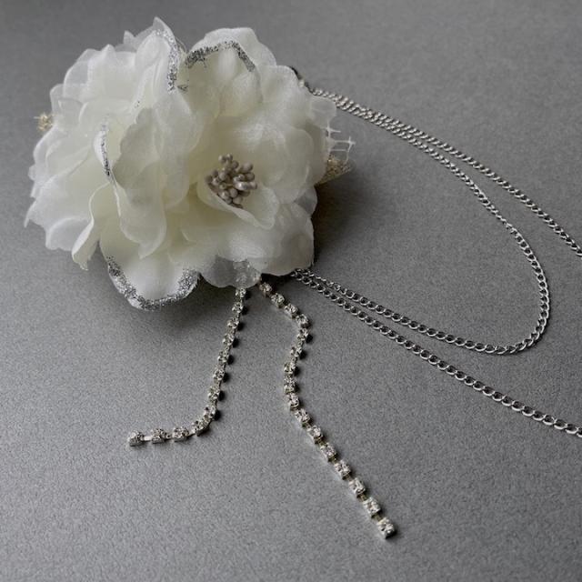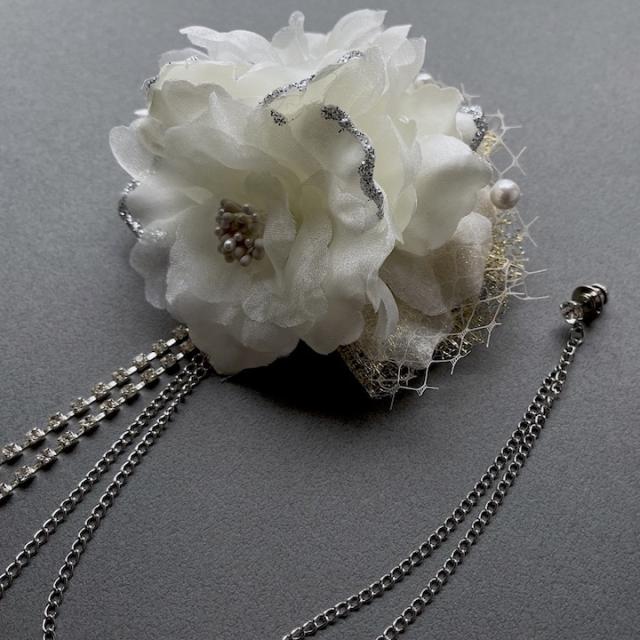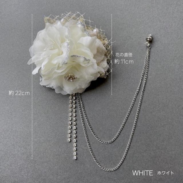 【関連ワード】コサージュ 白 ホワイト ストーン チェーン コサージュ ブローチ ラペルピン 結婚式 披露宴 フォーマル スーツ タキシード お洒落 男 メンズ アクセサリー 男性用 花 高級感 ブライダル ホスト 発表会 カラオケ大会 パーティー 新郎 父 司会 進行役 衣装 衣裳 プレゼント ギフト 20代 30代 40代 50代 60代