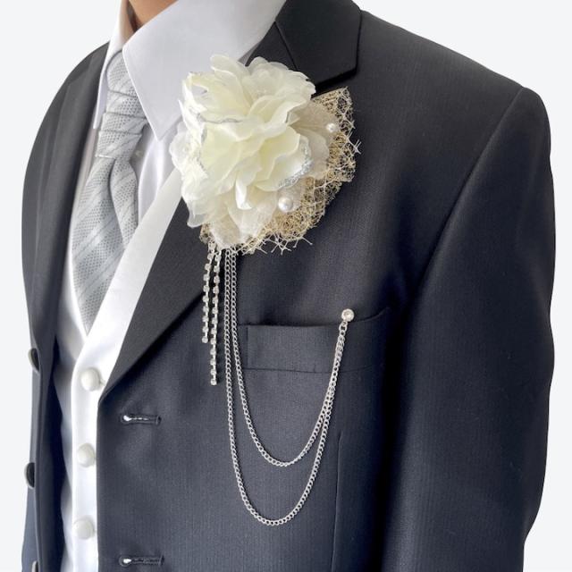 コサージュ メンズ 男性用 ストーン チェーン コサージュ ブローチ 結婚式 披露宴 フォーマル スーツ タキシード 男 メンズ アクセサリー 花 ブライダル 発表会 ハロウィン クリスマス パーティー 司会 進行役 衣装 衣裳