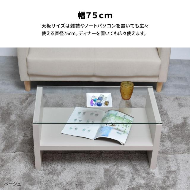 Noko ガラスセンターテーブル 幅75cm