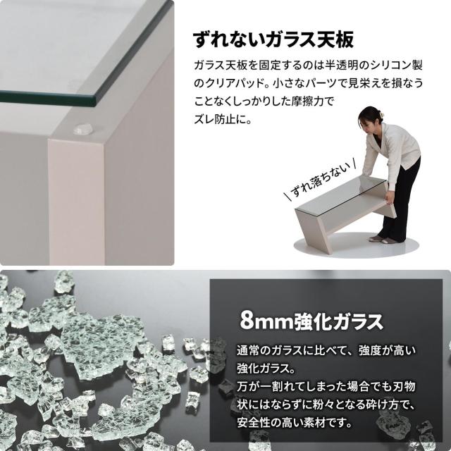 | 材質 | 素 材:【天板】8mm強化ガラス 【棚板/側板】中質繊維板にメラミン化粧貼り |