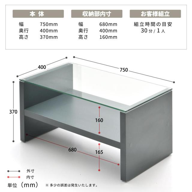 | 品名 | Noko ガラスセンターテーブル 幅75cm |
