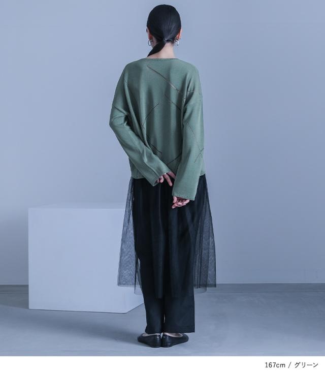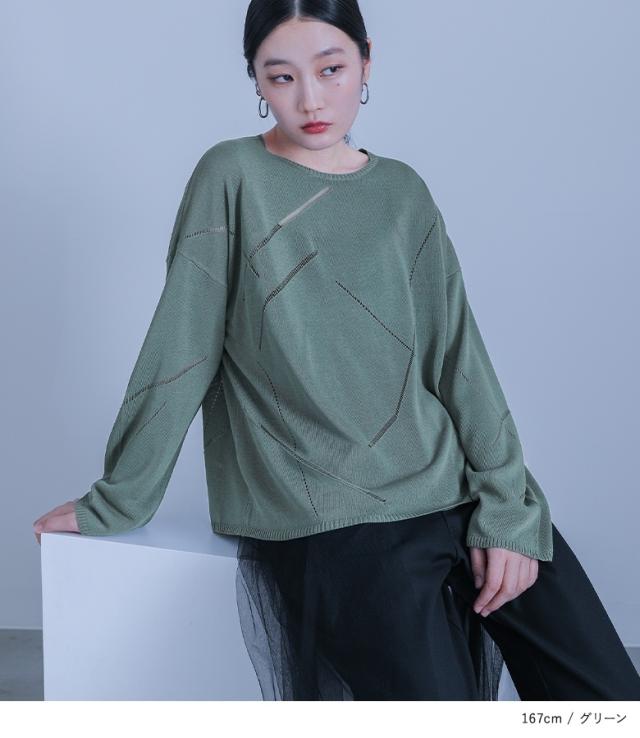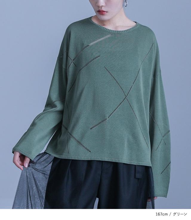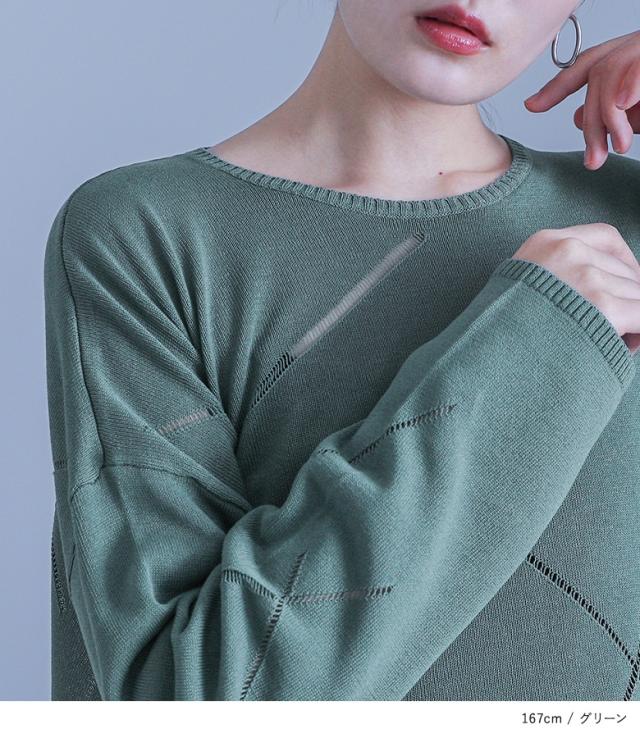 ニット レディース トップス 長袖 セーター 薄手 透かし編みライン レーヨン混 プルオーバー 落ち感 レイヤード 重ね着 春 秋 【TP】 透かし編み クルーネック ショート丈ニット ショート丈 ミディ丈 ミドル丈 ドロップショルダー ランダム ライン柄 無地 シースルー シアー 透け感 おうちで洗える シャリ感 夏 季節の変わり目 カジュアル シンプル モード マニッシュ キレカジ フェミニン ゆったり ゆる 二の腕カバー Sサイズ Mサイズ Lサイズ LLサイズ 3Lサイズ XLサイズ フリーサイズ ぽっちゃり 体型カバー 大きいサイズ プラスサイズ 10代 20代 30代 40代 50代 60代 女子会 オフィス 通勤 通学 お買い物 お出掛け 旅行 リゾート レジャー おしゃれ お洒落 トレンド 流行 kOhAKU コハク 大人女子 大人可愛い お洒落可愛い 大人カジュアル ラフ スタイリッシュ 洗練 エッジィ 上品 きれいめ かっこいい osharewalker オシャレウォーカー おしゃれうぉーかー グリーン 緑 ブラック 黒 差し色 春色ニット[ID]11tn0c8