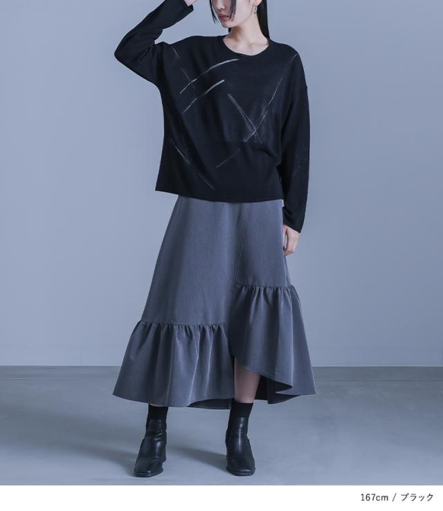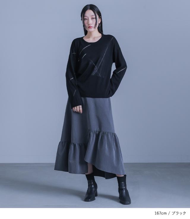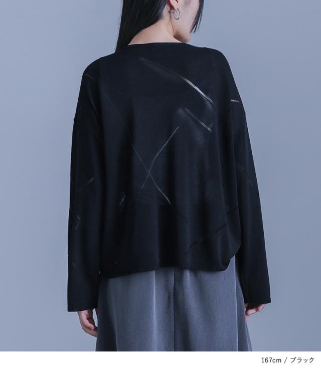 『ランダムラインニット』※メール便可※【10】[ニット レディース トップス 長袖 セーター 薄手 透かし編みライン レーヨン混 プルオーバー 落ち感 レイヤード 重ね着 春 秋]