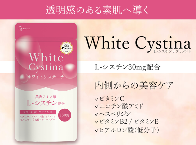 ホワイトシスチーナ 180粒 約3ヶ月分 5400mg シスチン Lシスチン 高配合 ビタミンC ヒアルロン酸 美容 ケア lシステイン サプリ エルシステイン サプリメント 美容サプリメント 美容サプリメント 肌 潤い システイン Lシステイン